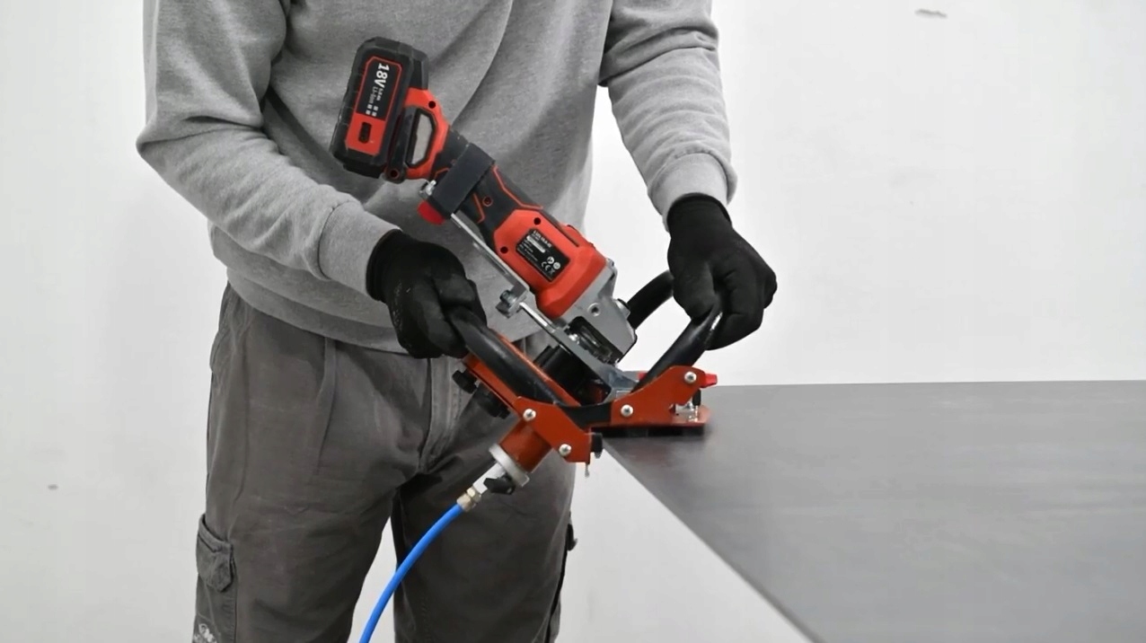 Obróbka odbywa się poprzez przesuwanie urządzenia BC45 spoczywającego na krawędzi płyty (lub płytki)