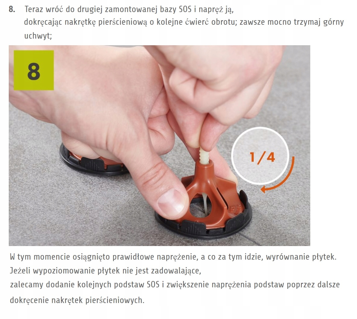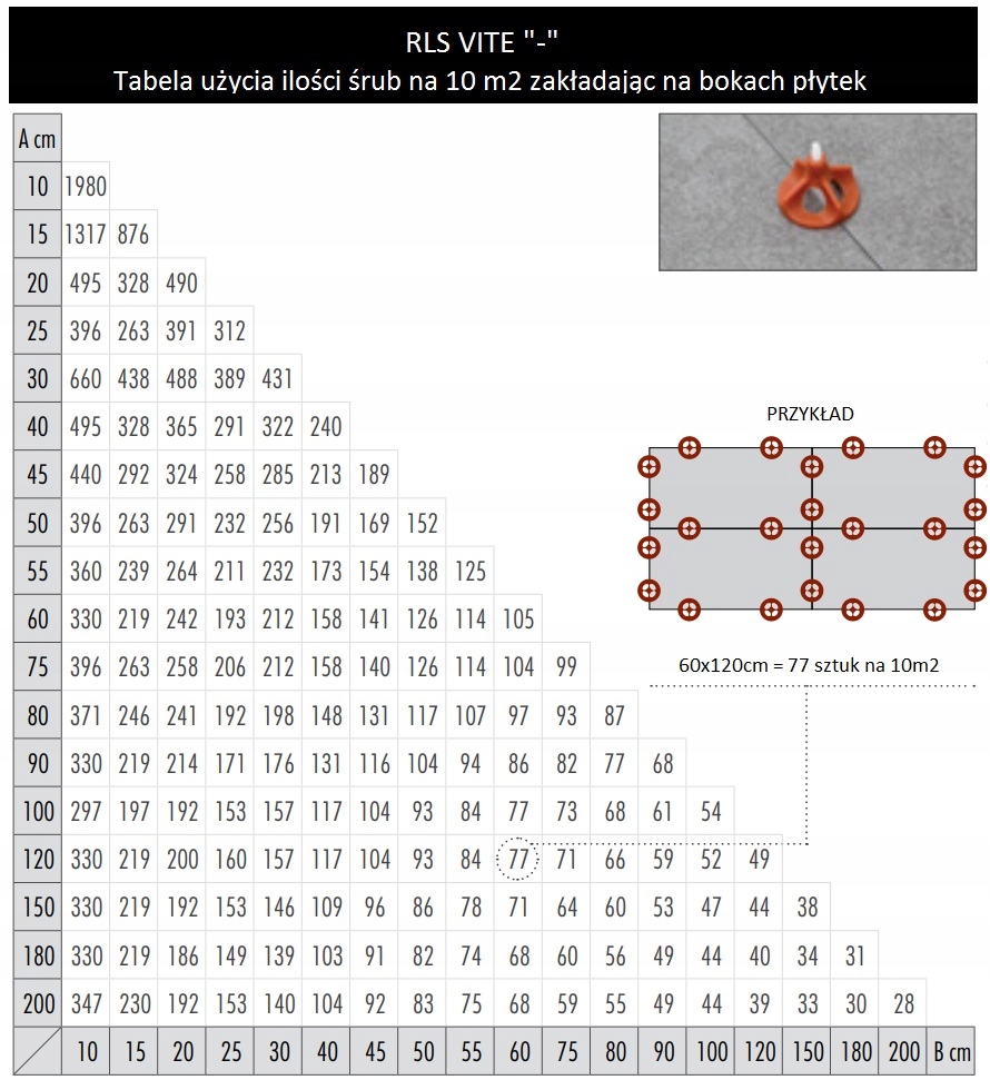 Dla płytek o grubości powyżej 6 mm zaleca się stosowanie 2 lub więcej śrub SOS w miejsce głównej śruby systemu RLS VITE
