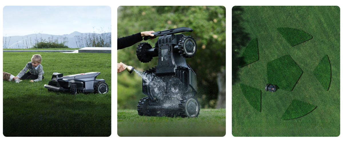 - Ultra-wydajne kosiarki MowMentum: Napędzana dwoma silnikami 180W, ta wydajna robotyczna kosiarka wyposażona jest w podwójne tarcze tnące o 12 ostrzach, szerokość 43 cm oraz adaptacyjne sterowanie ostrzami, które pozwala efektywnie radzić sobie z wysoką i gęstą trawą, podczas gdy EdgeSense zmniejsza margines przycinania poniżej 5 cm.