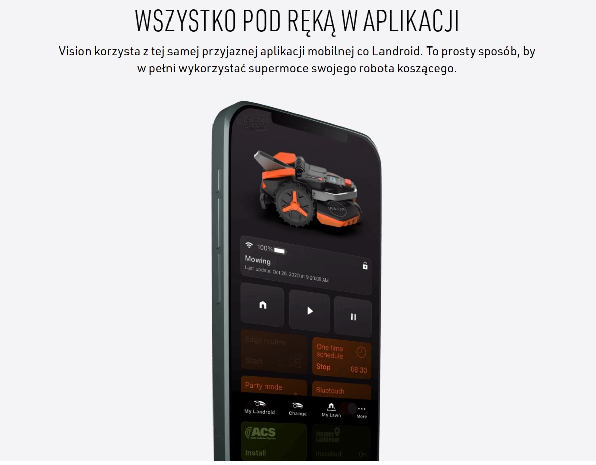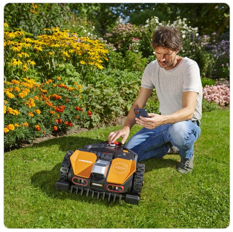 - Bez instalacji. Postaw Landroid Vision na dowolnym trawniku, włącz go i patrz, jak kosi za Ciebie.