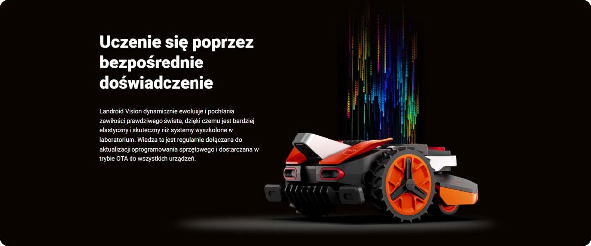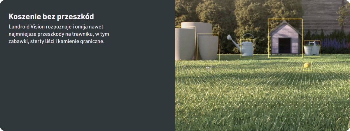 Głęboko wytrenowana sieć neuronowa Landroid Vision rozpoznaje trawę do skoszenia, przeszkody do uniknięcia i granice, których nie należy przekraczać.