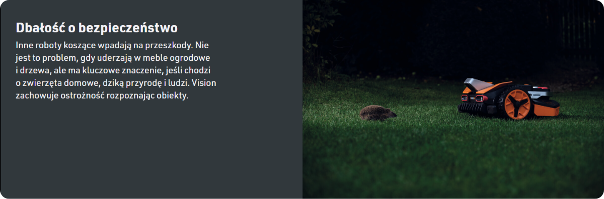 - Doskonałe unikanie przeszkód i dodatkowe bezpieczeństwo dla ludzi, zwierząt domowych i dzikich zwierząt.