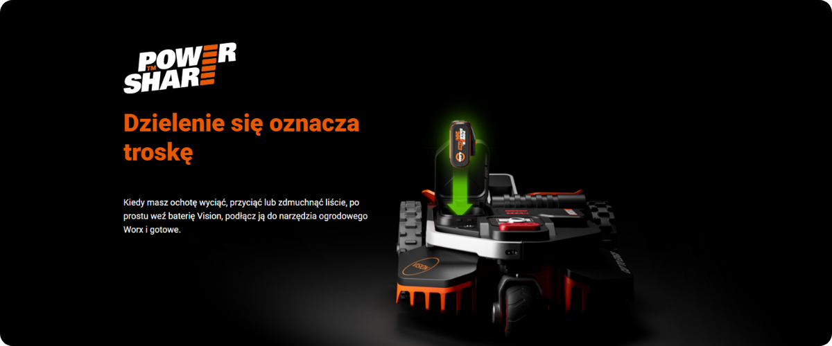Vision zasilany jest bateriami WORX z systemu PowerShare.