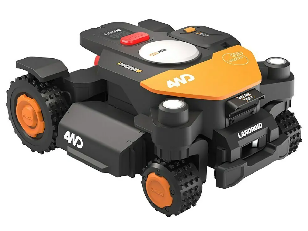 Zaprojektowany do każdego rodzaju terenu: Worx Landroid Vision Cloud 4WD WR342E został zaprojektowany do obsługi złożonych trawników do 2000 m² – od stromych stoków i nierównego terenu po zaawansowane projekty ogrodów.