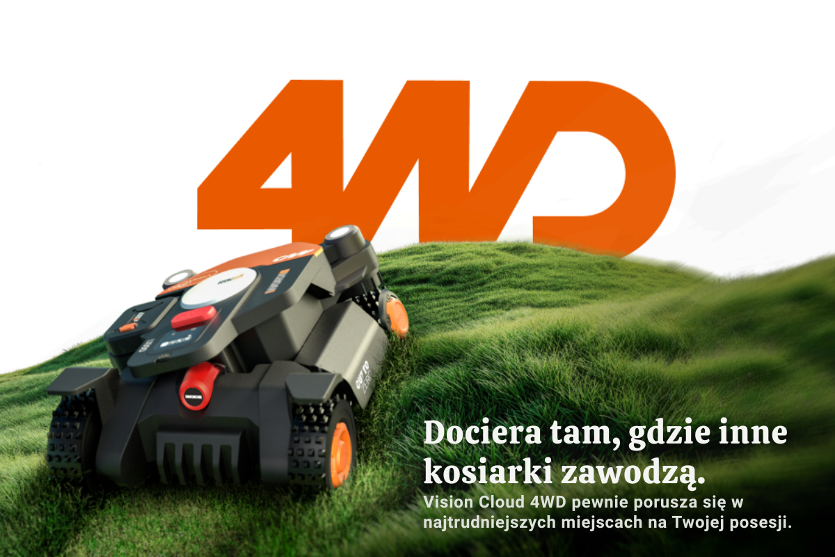 Robot koszący WR344E jest przeznaczony do dużych i wymagających ogrodów – nawet do 4000 m2. Dzięki napędowi na cztery koła radzi sobie ze stromymi podjazdami i nierównym terenem, utrzymując stabilną przyczepność podczas koszenia. Systemy Vision AI, RTK Cloud i V-SLAM pozwalają kosić trawnik bez przewodu ograniczającego, automatycznie mapować ogród i precyzyjnie omijać przeszkody.