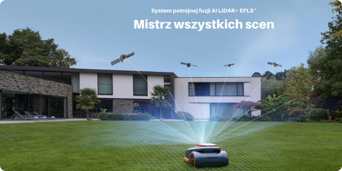 Podstawą tego jest system EFLS™ LiDAR, który łączy technologię LiDAR, wizualne wsparcie pozycji oraz sieciowe RTK. Dzięki tej inteligentnej fuzji czujników, robotyczna kosiarka osiąga bardzo wysoki poziom dokładności pozycjonowania, co umożliwia precyzyjne prowadzenie w praktycznie określonych obszarach koszenia – bez żadnych drutów granicznych czy ziemnych konstrukcji.
