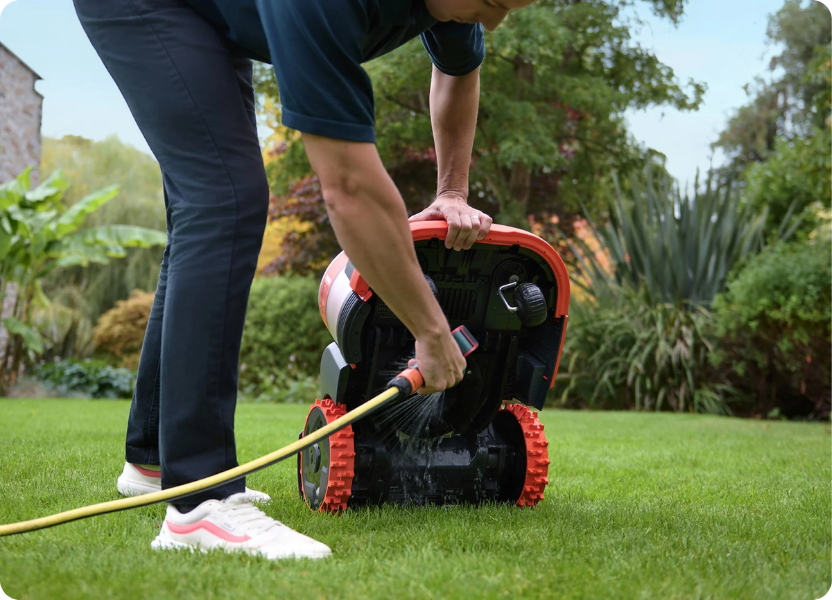 Dzięki klasie ochrony IP66, robotyczna kosiarka jest w pełni chroniona przed kurzem i silnymi strumieniami wody i zaprojektowana do stałego użytku na zewnątrz.