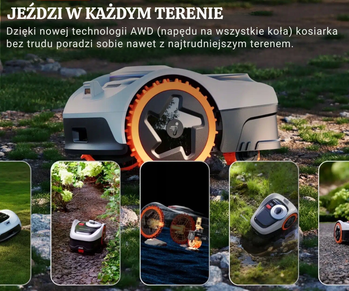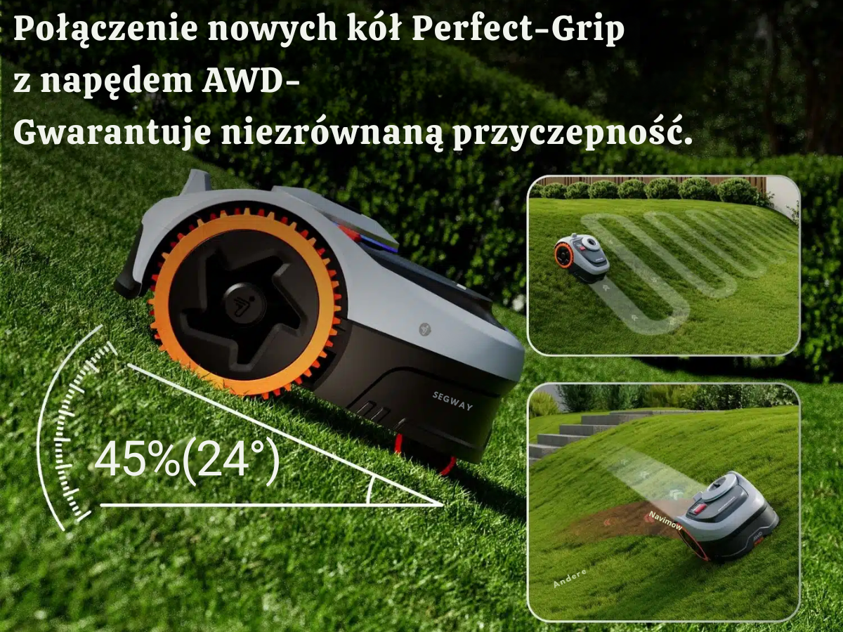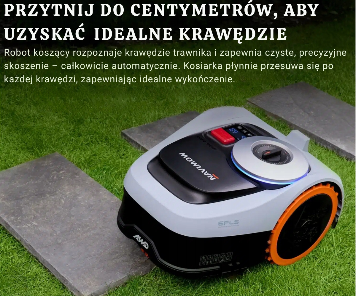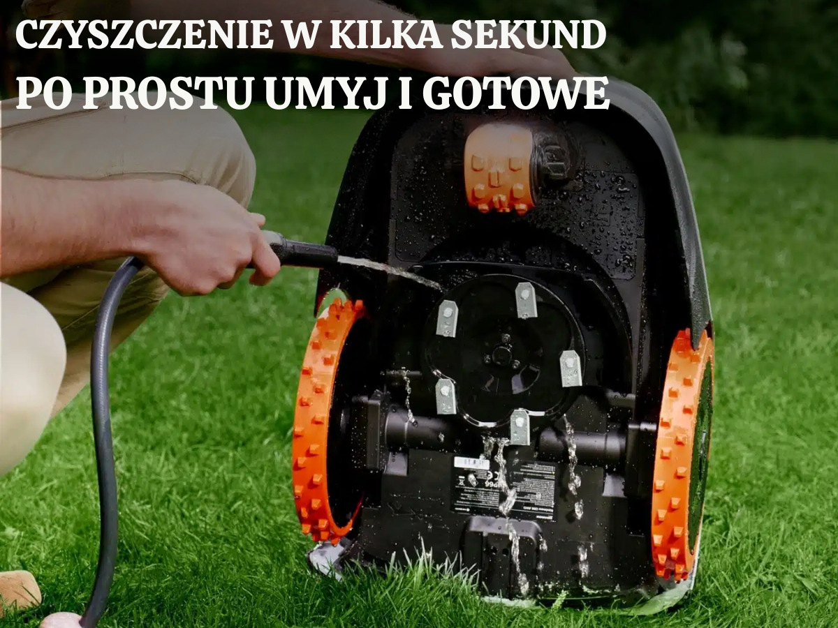 Robotyczna kosiarka nie ślizga się i nie traci kontroli nawet na wilgotnych powierzchniach, co zwiększa zarówno bezpieczeństwo, jak i jakość trawnika.