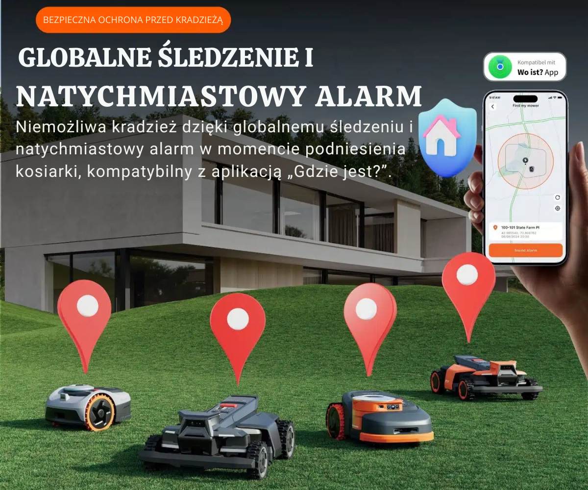 Robotyczna kosiarka jest dobrze chroniona, nawet jeśli zostanie przeniesiona bez zezwolenia.