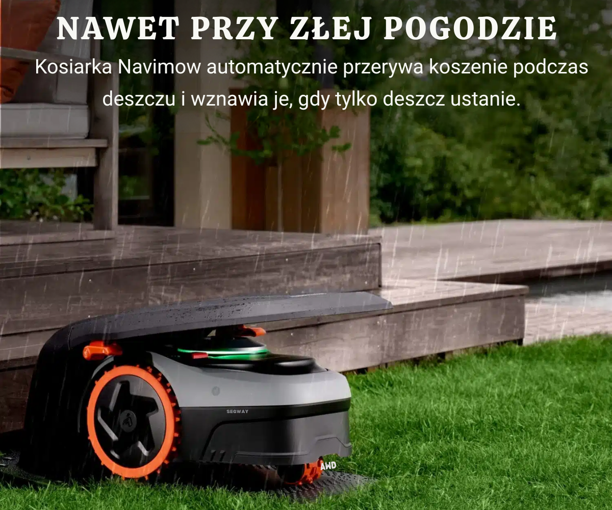 Deszcz, rozpryskiwana woda czy kurz nie wpływają na działanie – robotyczna kosiarka pozostaje niezawodnie gotowa do użycia.