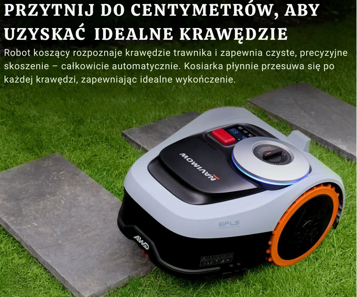 Trawnik jest koszony precyzyjnie i dokładnie, bez konieczności układania przewodu granicznego. Oszczędza to czas związany z instalacją i pozwala na maksymalną elastyczność przy późniejszych zmianach w strukturze ogrodu.