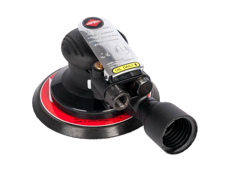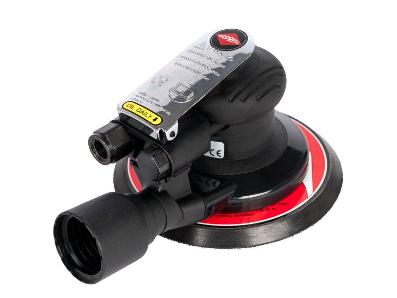 AIRPRESS 45428 to Pneumatyczna szlifierka mimośrodowa (oscylacyjno-obrotowa). Główne funkcje i zalety modelu to: rozmiar pada: 150[mm](6”), skok mimośrodu:5[mm]. Najwyższy komfort pracy operatora zapewnia unikalny kształt narzędzia. Wysoka wydajność, przy jednoczesnym spadku poziomu wibracji oraz potężny silnik o prędkości obrotowej 12 000[obrotów/minutę] powodują, że jest to idealna szlifierka do przygotowania powierzchni przed malowaniem. Niski poziom hałasu, miękki uchwyt oraz wyłącznik odcinający i regulator prędkości zapewniają operatorowi wysoki komfort użytkowania. Model z systemem samo-odpylania - odpylanie workowe. Przeznaczony jest do zastosowań warsztatowych i lekkich prac przemysłowych np. produkcja i konserwacja.