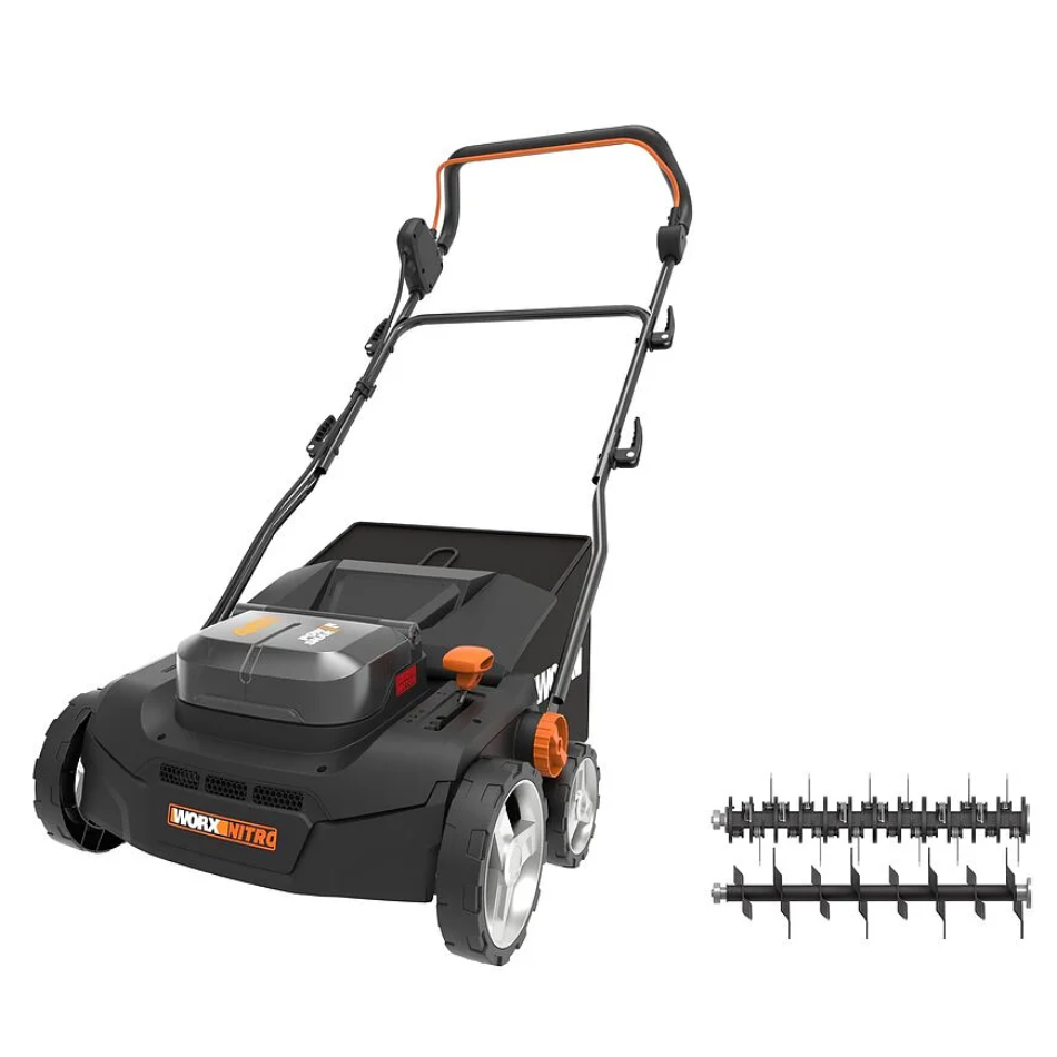 Aerator z funkcją wertykulacji WORX to wielofunkcyjne urządzenie do grabienia i usuwania mchu oraz wertykulowania ogrodu. Urządzenie ma 3 poziomy regulacji głębokości roboczej, regulowaną rączkę i jest kompatybilne z akumulatorami PowerShare. Z 16 ostrzami i szerokością grabienia 36 cm, produkt waży tylko 13,3 kg (bez baterii).