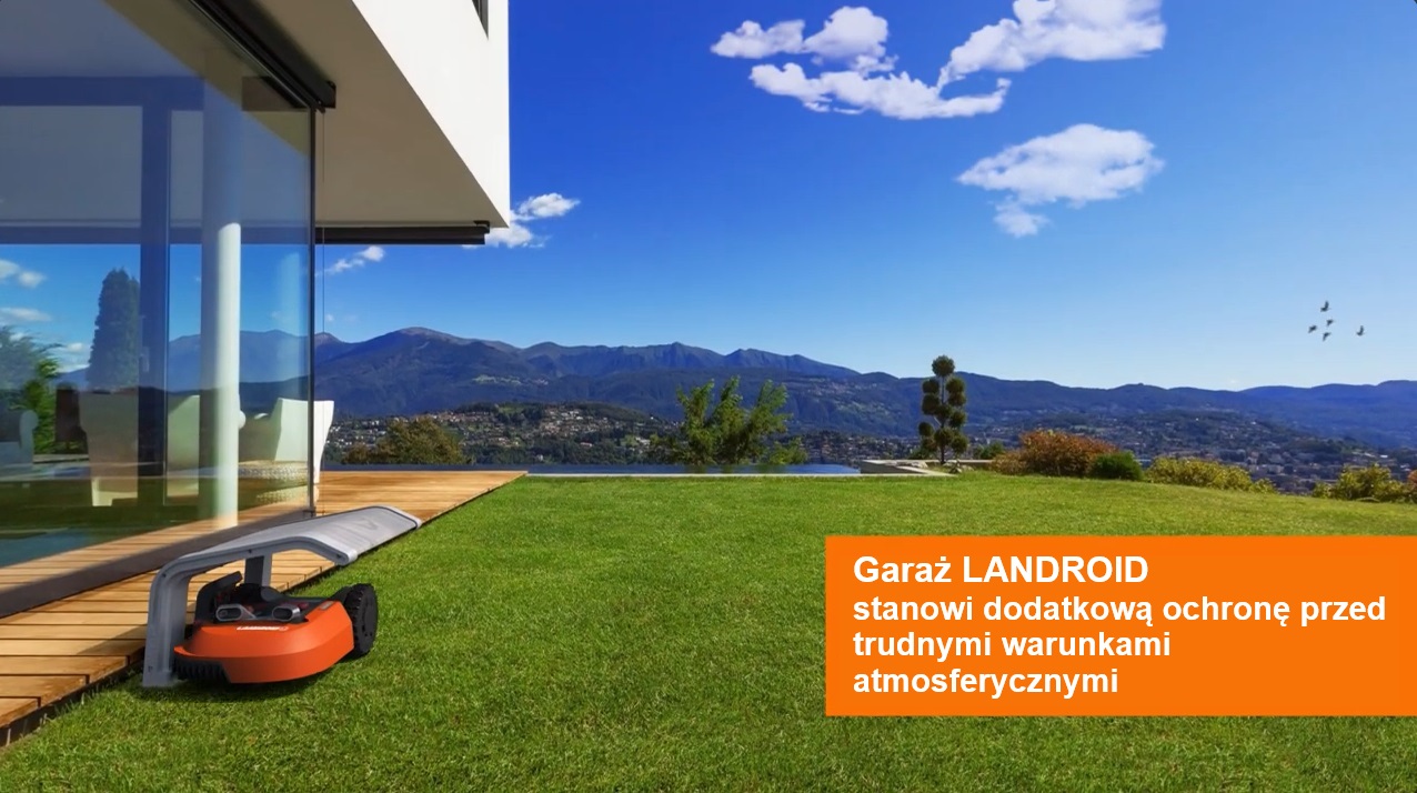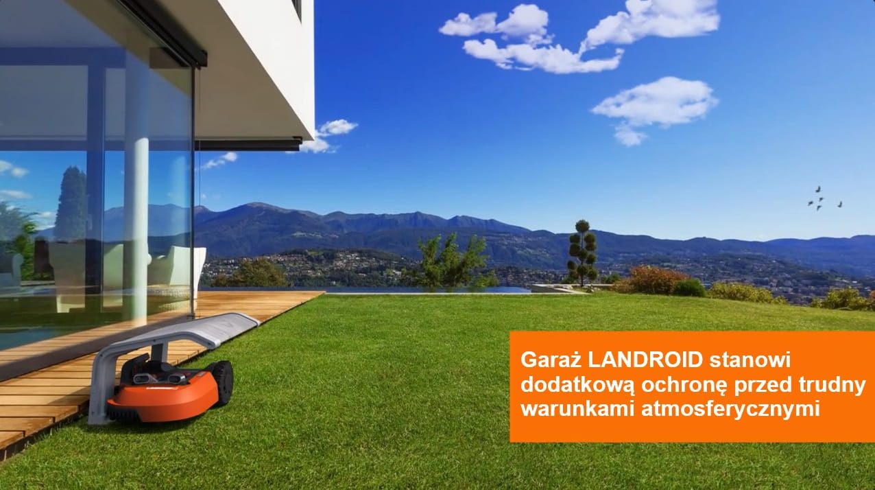 Garaż chroni Landroida przed bezpośrednim działaniem słońca i deszczu. Łatwa instalacja na stacji ładującej.