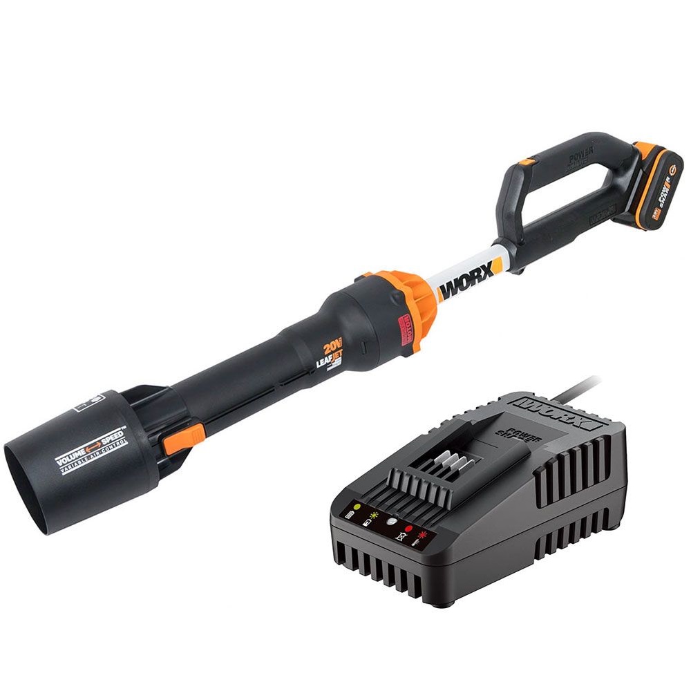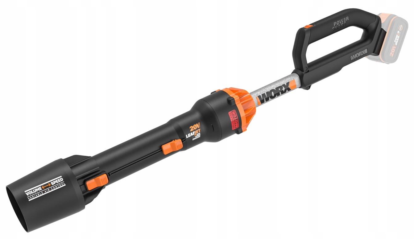 - Technologia Worx Leafjet Sonic Turbine zapewnia większą objętość powietrza i można łatwo przełączać się między trybami dużej objętości lub dużej prędkości.