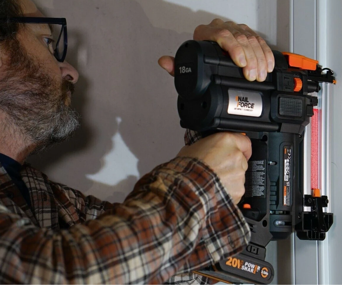 Gwoździarka WORX z technologią Air Impact umożliwia wbijanie gwoździ o długości do 2 cali w twarde drewno, osiągając tempo do 80 gwoździ na minutę. Urządzenie jest zasilane baterią, eliminując potrzebę stosowania sprężarki powietrznej czy wkładów gazowych. Dzięki kompaktowej budowie idealnie nadaje się do pracy w ciasnych przestrzeniach, a lekka konstrukcja zwiększa komfort użytkowania. Funkcja beznarzędziowego usuwania zacięć oraz ochrona przed odrzutem podnoszą bezpieczeństwo pracy. Magazynek szybkiego ładowania i beznarzędziowa regulacja głębokości wbicia gwoździ zapewniają wygodę i efektywność. Urządzenie posiada również tryb pojedynczy i sekwencyjny, a kompatybilna bateria PowerShare 20 V (sprzedawana oddzielnie) może być używana z innymi narzędziami WORX.