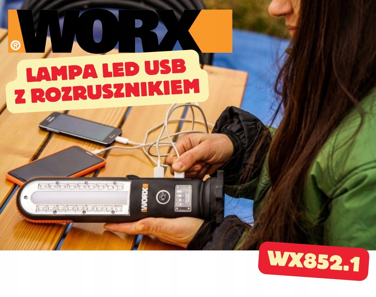 WORX LAMPA AWARYLNA LED USB Z ROZRUSZNIKIEM WX852.1