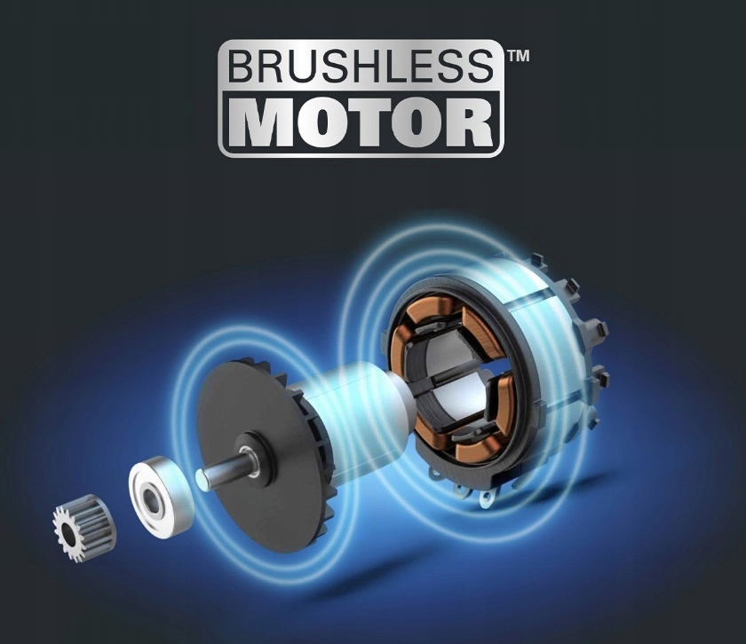 Silnik bezszczotkowy wydłuża czas pracy, zapewnia więcej mocy i zwiększa żywotność silnika.
