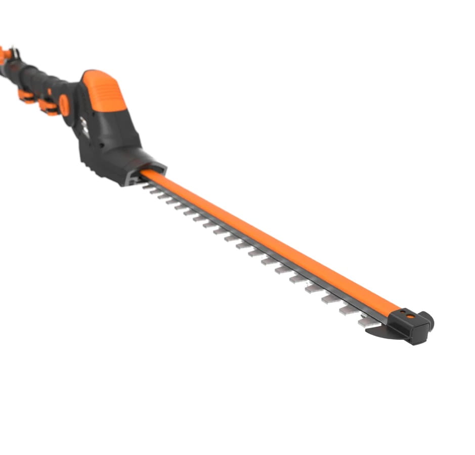 Wysięgnik ma zasięg do 3,8 m, dzięki czemu nawet wysokie żywopłoty można przycinać bez użycia drabiny.