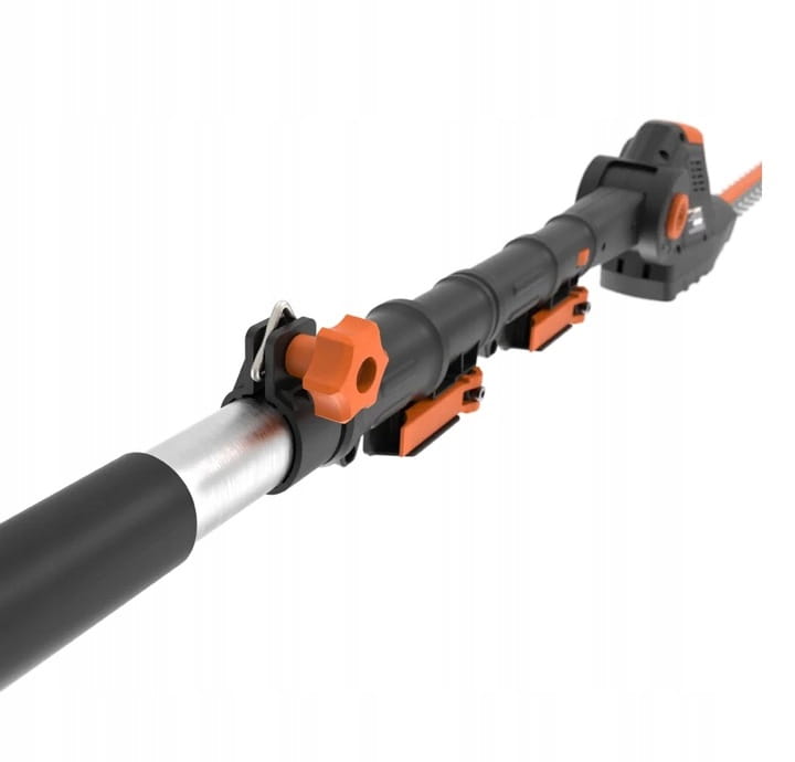 Wysięgnik ma zasięg do 3,8 m, dzięki czemu nawet wysokie żywopłoty można przycinać bez użycia drabiny.