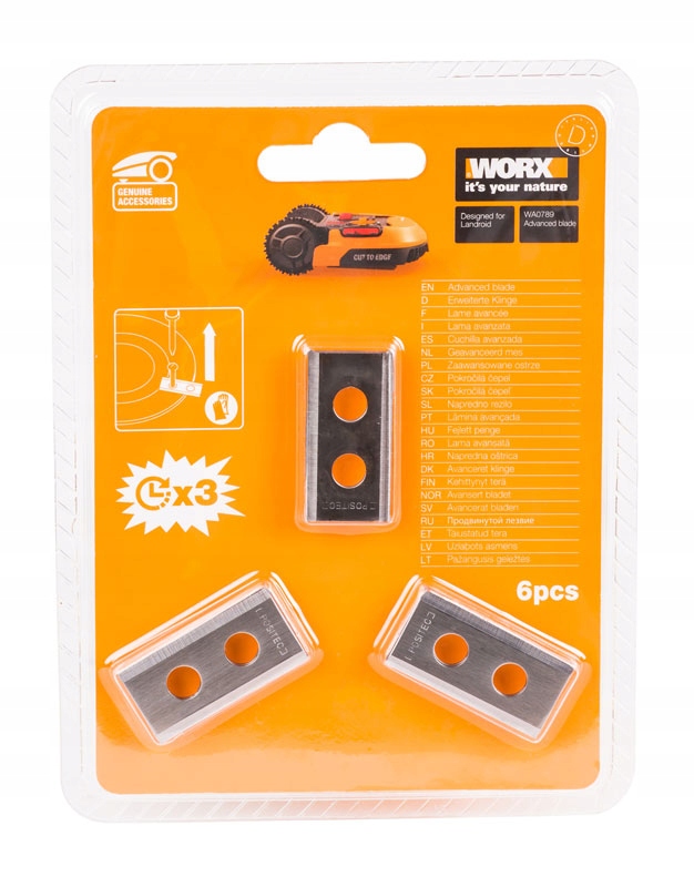 6 sztuk wymiennych ostrzy tnących przeznaczonych do robotów koszących WORX Landroid. 3x dłuższa żywotność niż standardowe ostrza. Noże umieszczone w dysku tnącym obracają się w obu kierunkach co zdecydowanie zminimalizuje częstotliwość wymiany ostrza. Regularnie wymieniaj ostrza, aby zachować perfekcyjne cięcie.