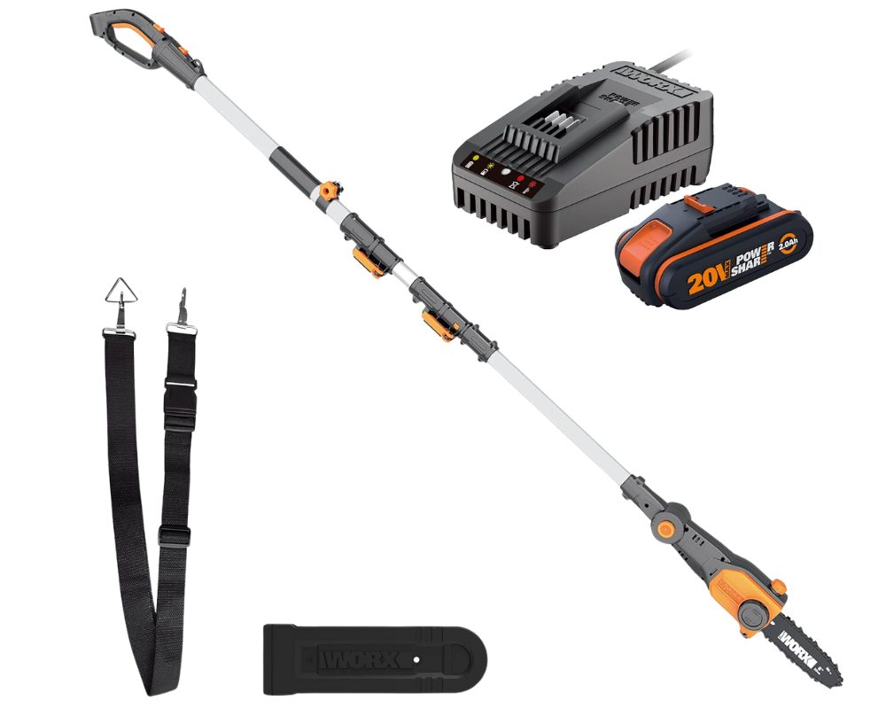 Nowoczesna pilarka akumulatorowa Worx jest idealna do przycinania trudno dostępnych gałęzi, wysokich drzew i krzewów.