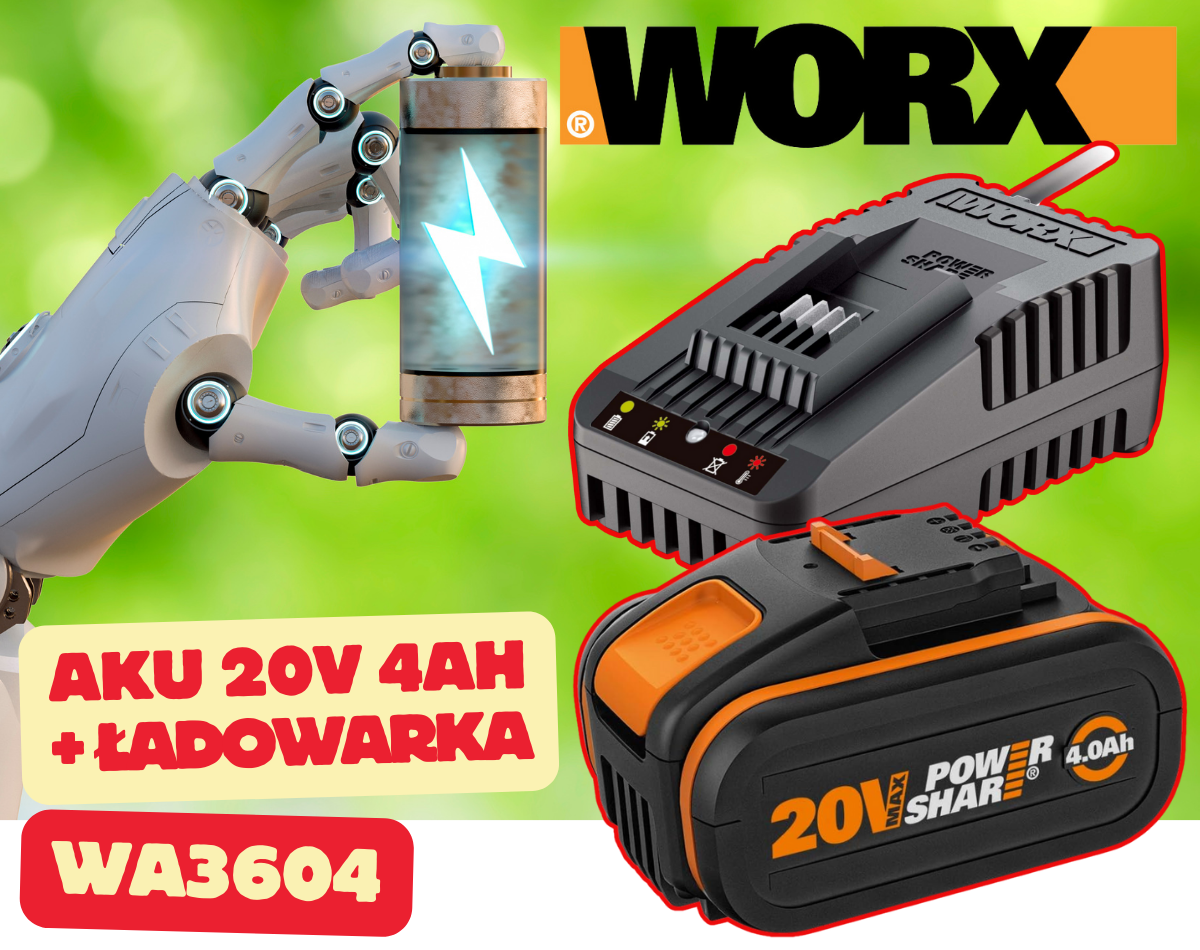ZESTAW AKUMULATOR + ŁADOWARKA WORX 20V 4.0Ah